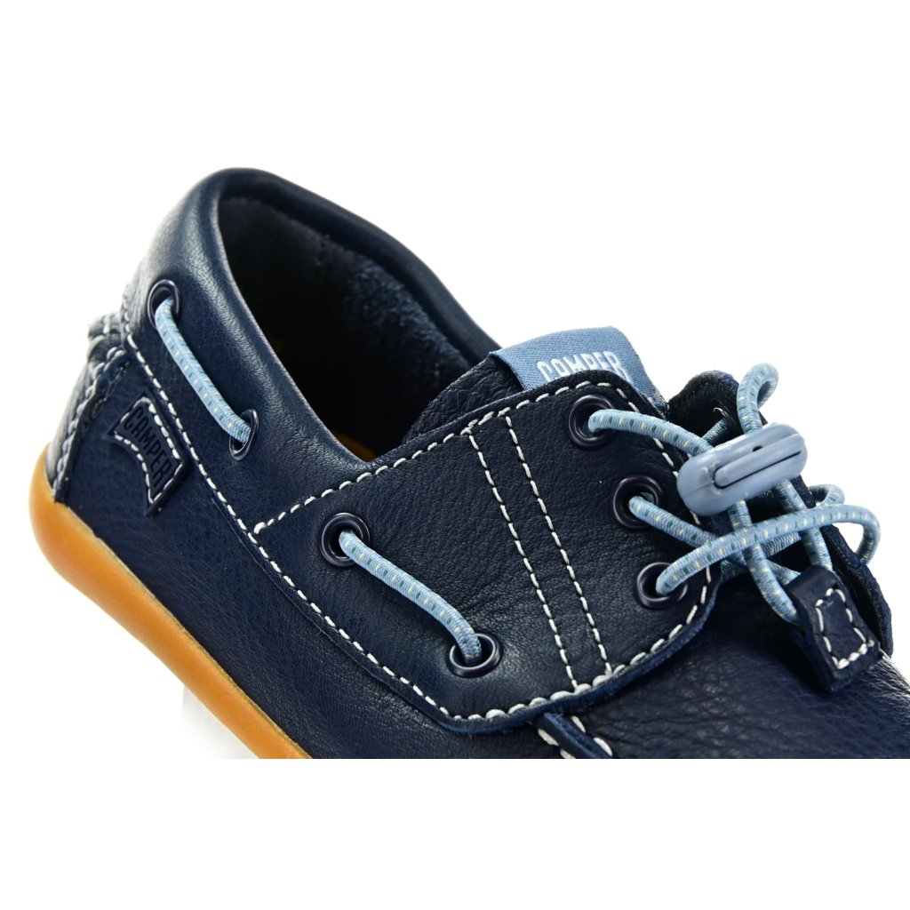 Die marineblauen Barfußhalbschuhe von Camper vereinen tollen Stil mit hohem Tragekomfort. Weiches Leder, eine flexible Laufsohle und ein leicht verstellbarer Elastiksenkel sorgen für ein sicheres und natürliches Laufgefühl den ganzen Tag.
