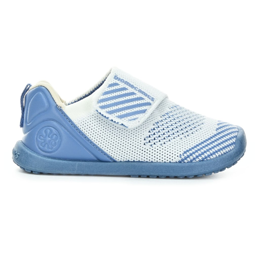 Die Biomecanics Kinder-Barfußsneakers sind leicht, atmungsaktiv und perfekt für warme Tage voller Bewegung im Freien und im Kindergarten. Das elastische Textil passt sich auch höherem Spann optimal an, der breite Klettverschluss erleichtert das Anziehen, und die hellblau-weiße Ausführung verleiht den Schuhen ein frisches und modernes Aussehen.