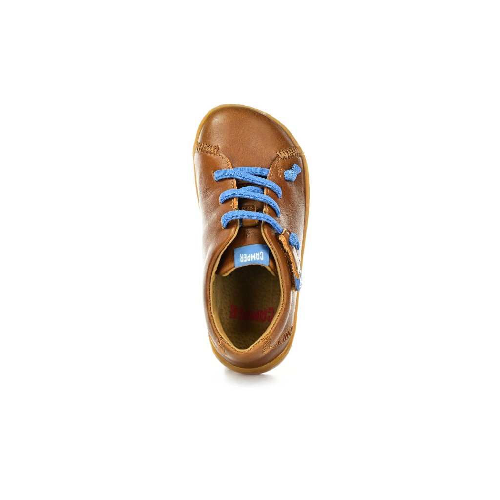 Die Camper Barfußhalbschuhe, die Kindern im Alltag Sicherheit und Komfort bieten. Sie passen sowohl normalen Füßen als auch Füßen mit hohem Spann, lassen sich dank Elastiksenkel mit Klettverschluss leicht anziehen und bieten nach dem Entfernen der Einlegesohle ein natürliches, weiches Laufgefühl.
