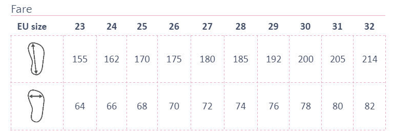 EU Größe: 24, Innenschuhlänge: 157, Innenschuhbreite: 68